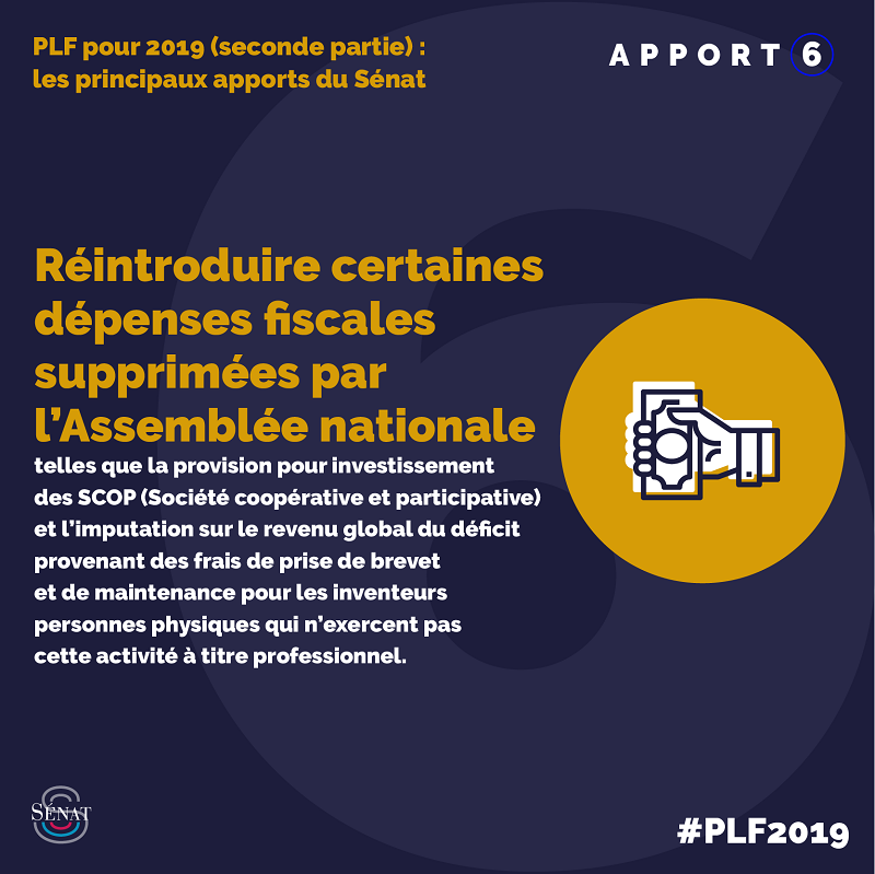 Les principaux apports du Sénat sur la première partie du PLF pour 2019 en première lecture :