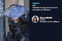 Mardi 22 janvier 2019, Éliane ASSASSI et plusieurs de ses collègues ont déposé au Sénat la proposition de loi visant à interdire l'usage des lanceurs de balles de défense dans le cadre du maintien de l'ordre et à engager une réflexion sur les stratégies de désescalade et les alternatives pacifiques possibles à l'emploi de la force publique dans ce cadre.
