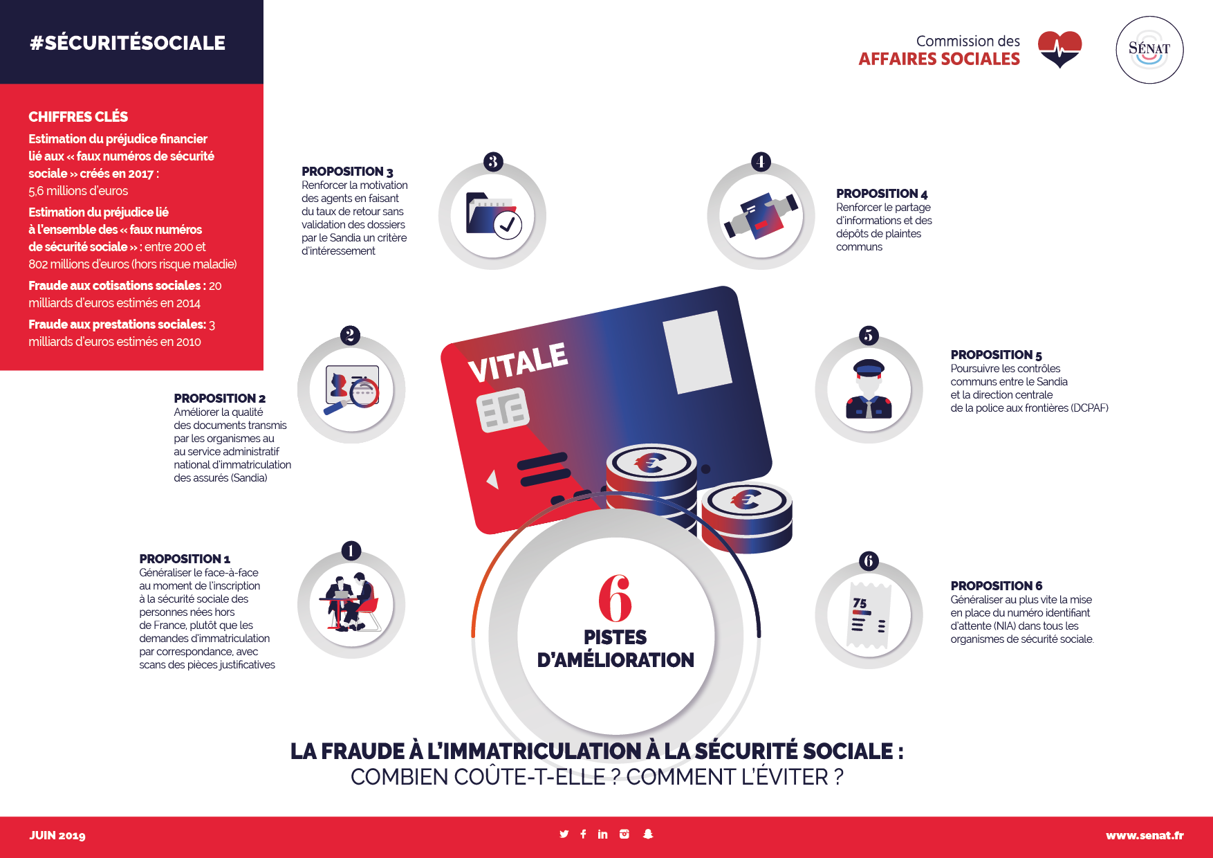 Mercredi 5 juin 2019, Jean-Marie VANLERENBERGHE, rapporteur général de la commission des affaires sociales, a présenté à la presse les conclusions de son rapport sur les conséquences de la fraude documentaire sur la fraude aux prestations sociales, fait au nom de la commission des affaires sociales, présidée par Alain MILON.