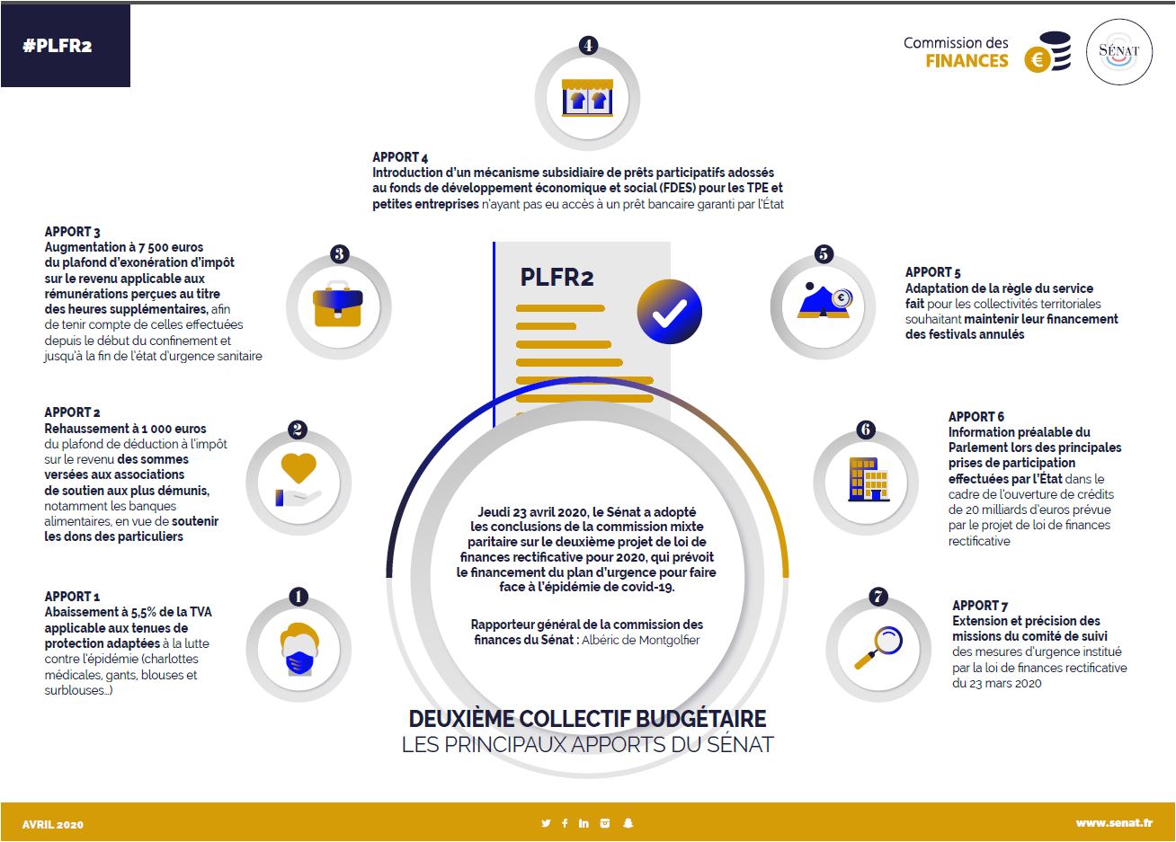 Au cours des séances des 21 et 22 avril 2020, le Sénat a adopté des amendements visant à :