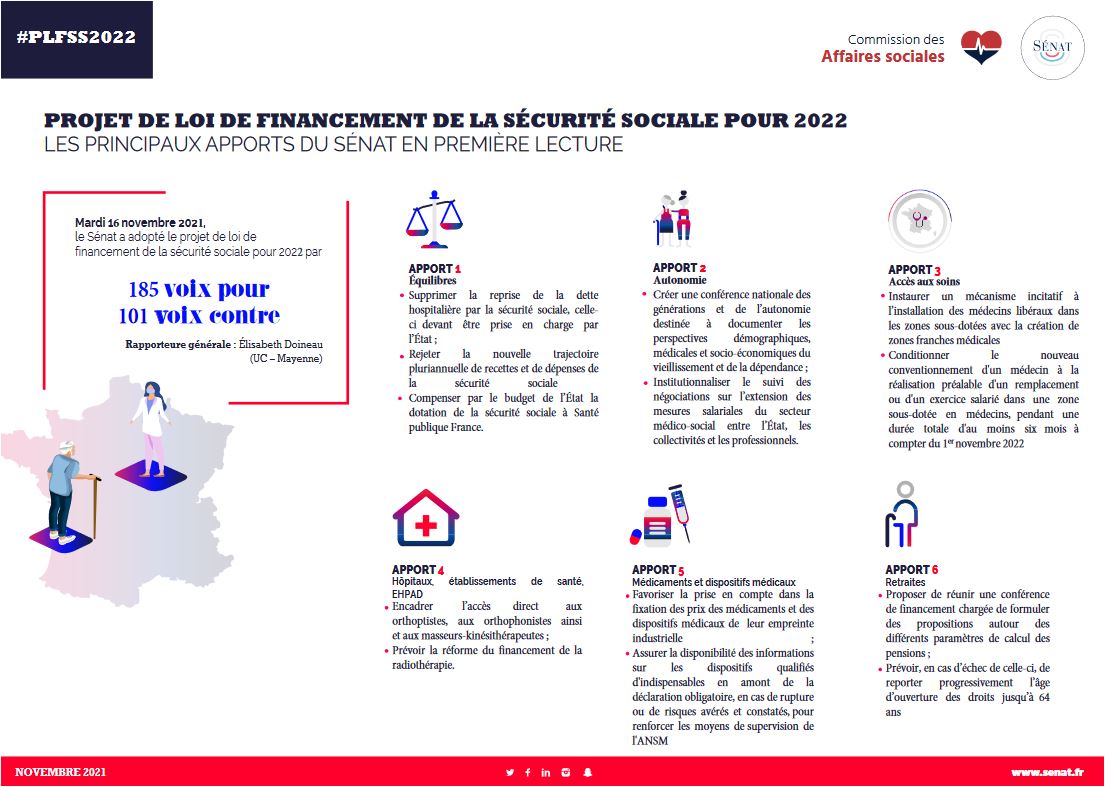 Les principaux apports du Sénat en première lecture sur le projet de loi de financement de la sécurité sociale (16 novembre 2021)