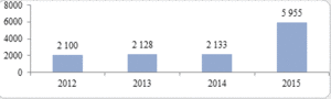 Schéma de fin de gestion de 2012 à 2015 (montant des ouvertures de crédits en fin de gestion)