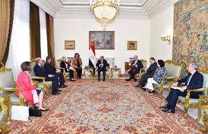 La délégation a également eu un long entretien - près d'une heure et demie - avec le Président de la République, M. Abdel Fatah Al-Sissi. Cela a été l’occasion d’appréhender les multiples défis en particulier économiques et sociaux, auxquels doit faire face l'Égypte aujourd'hui, du fait notamment de la très forte croissance démographique de la population égyptienne (+2,5 millions d’habitants par an).
