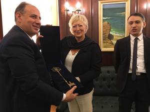 | Remise des clefs d’Alexandrie à Mme Catherine Morin-Desailly, par le Gouverneur, M. Mohamed Ali Sultan, en présence du Consul général de France, M. Nabil Hajlaoui | Hommage de la délégation aux victimes des attentats terroristes dans l’église copte Saint-Pierre et Saint-Paul (26 mars 2017) |