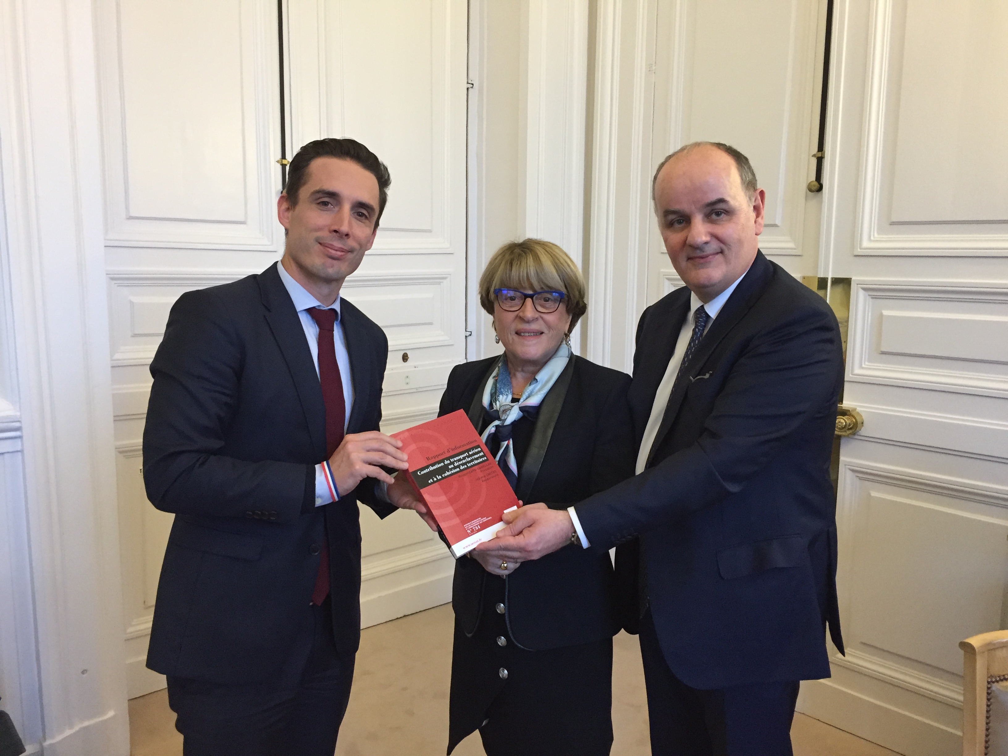Vincent Capo-Canellas (UC - Seine-Saint-Denis), président, et Mme Josiane Costes (RDSE - Cantal), rapporteure de la mission d’information sur le transport aérien et l’aménagement des territoires, ont remis à M. Jean-Baptiste Djebbari, secrétaire d’État chargé des transports, le rapport intitulé "Contribution du transport aérien au désenclavement et à la cohésion des territoires", présenté à la presse le 3 octobre 2019.