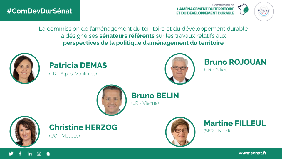 Afin de prolonger ces travaux, la commission a désigné 5 rapporteurs, Bruno Belin, Patricia Demas, Martine Filleul, Christine Herzog et Bruno Rojouan. Au printemps 2022, elle a adopté 5 rapports d'information thématiques, susceptibles de déboucher sur des propositions législatives, touchant au quotidien des Français dans les territoires :
