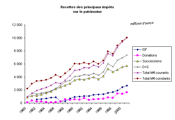Entre 1980 et 2001, la part des droits de mutation dans les recettes fiscales de l'État a été multipliée par trois. Si l'on ajoute l'ISF, ce sont aujourd'hui presque 4 % des impôts de l'État, qui sont assis sur le patrimoine des personnes physiques, contre un peu plus de 1 % seulement en 1980.