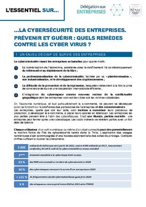 Avec la crise sanitaire, la généralisation du télétravail et l'usage accru d'équipements informatiques personnels dans un contexte professionnel, on observe une multiplication des cyberattaques. L'accélération de la transition numérique de l’économie confirme la nécessité d’accompagner les entreprises françaises qui désirent accélérer leur transition numérique sans compromettre leur sécurité. C'est dans cette optique que le rapport de la Délégation aux entreprises cherche à s'inscrire.