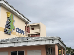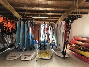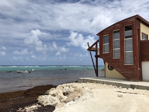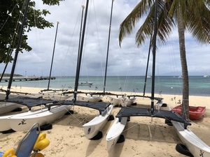 La séquence marie-galantaise s’est conclue par la visite de la base nautique, dont l'activité est très fortement restreinte par les sargasses ces mois-ci, et du stade rénové de Capesterre.