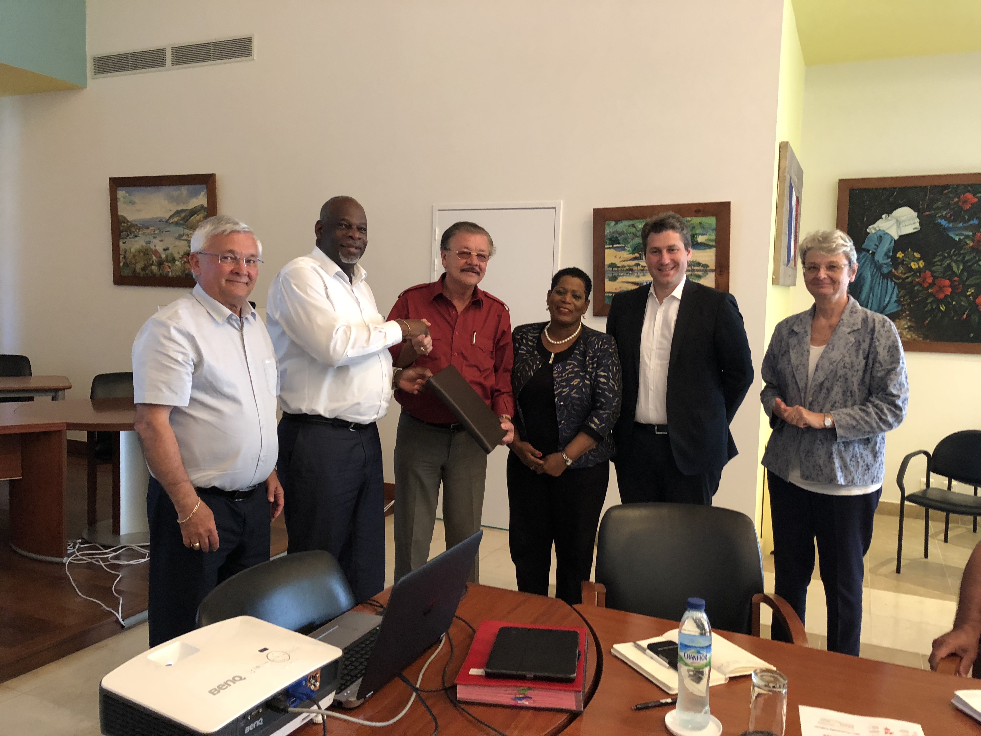 Ils ont ensuite rencontré Mme Manuela Avril, vice-présidente du conseil départemental, qui a souligné la nécessaire implication des collectivités dans les cellules de crise alors que les infrastructures qu’elles gèrent sont déterminantes dans la crise ou l’immédiat après-crise, puis Mme Sylvie Gustave-Dit-Duflo, vice-présidente du conseil régional, qui a mis l'accent sur les efforts de la région Guadeloupe en matière de recherche sur les changements climatiques et sur les nouveaux risques naturels comme les sargasses.