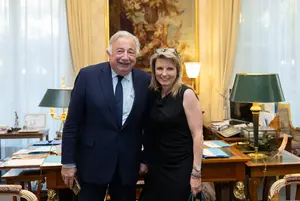 Le 8 avril 2026, Gérard Larcher a reçu Mme Caroline Doucerain, maire des Loges-en-Josas (78).