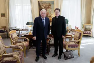 Le 18 mars 2026, Gérard Larcher s'est entretenu avec le père Jacques Ollier, nouveau curé de la basilique Sainte-Clotilde et directeur du Service pastoral d'études politiques qui a pour mission d'accompagner spirituellement les parlementaires.